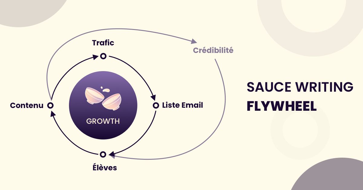 Cette flywheel me permet de bien visualiser que les contenus que je crée sont à la base de mon business :