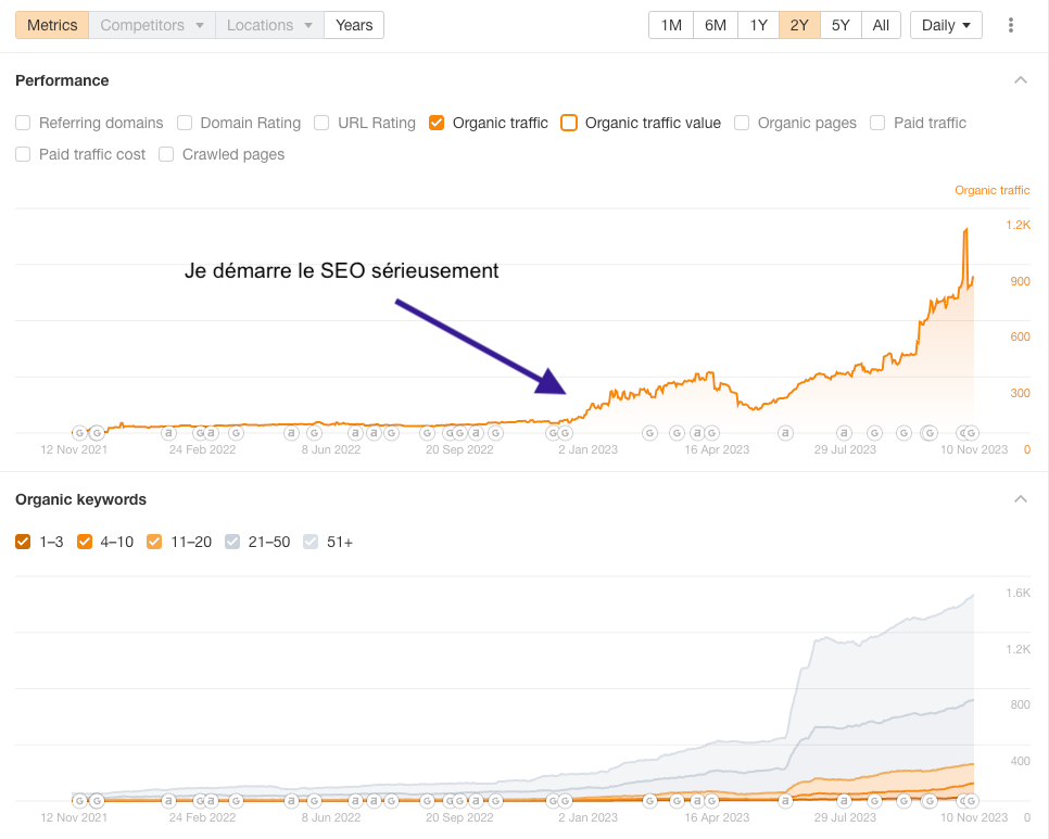 Le SEO rentre exactement dans cette case. Écrire des bons vieux articles de blog qui vont se positionner sur des recherches Google.
